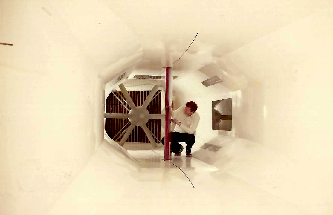 The 80-by-120-foot wind tunnel at NASA Ames Research Center, part of the National Full-Scale Aerodynamics Complex (NFAC), was completed in 1982 as an expansion of the existing 40-by-80-foot (12.2-by-24.4-meter) tunnel. This addition was a key part of a comprehensive modernization project that began in 1972, aimed at enhancing the facility’s capacity to test larger aircraft and advanced aerospace systems. The updates included the installation of a new fan drive system, as well as the construction of the upstream 80-by-120-foot (24.4-by-36.6-meter) test section. With its combined test sections, the NFAC became the world’s largest wind tunnel facility, capable of testing full-scale airplanes and rotorcraft, and supporting critical aerospace research.