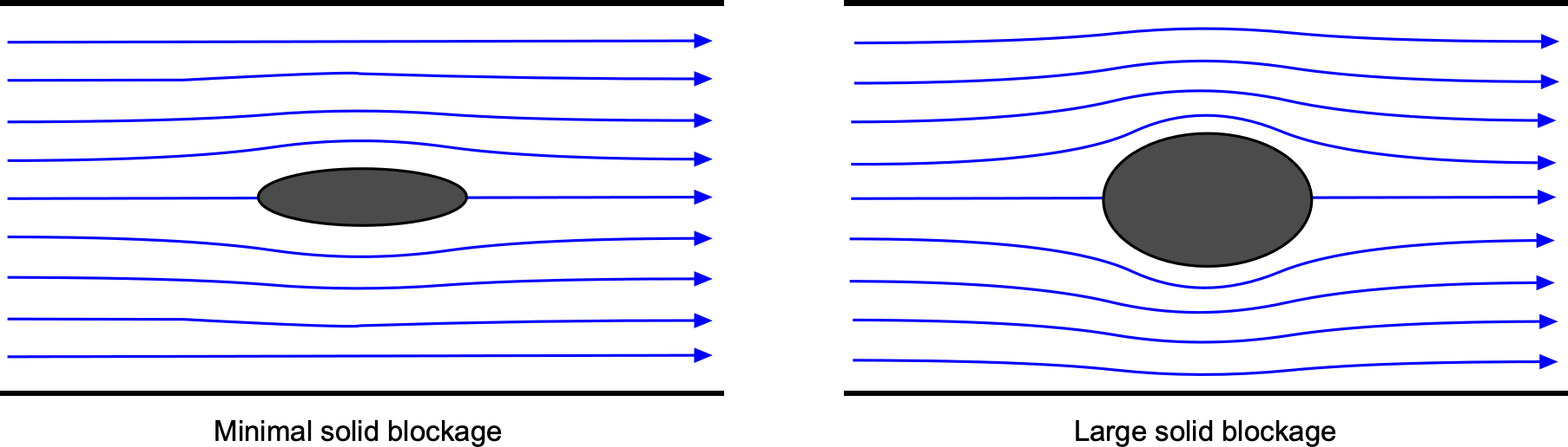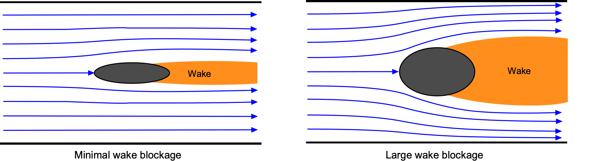 Scaling | Conditions must approximate full scale through Mach and/or Reynolds similarity, sometimes requiring pressurization, cryogenics, or larger models. | Blockage ratio (frontal area of model to test section area) |