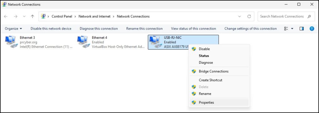 - NOTE: I always disable then enable the network connection. I don’t know if this is necessary, it was just habit.